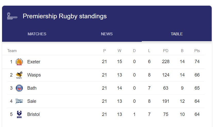 While Exeter Chiefs sit proudly at the top of the Gallagher Premiership by a clear eight points from Wasps, their final day opponents on Sunday, the race for the remaining play-off spots has gone right down to the wire.